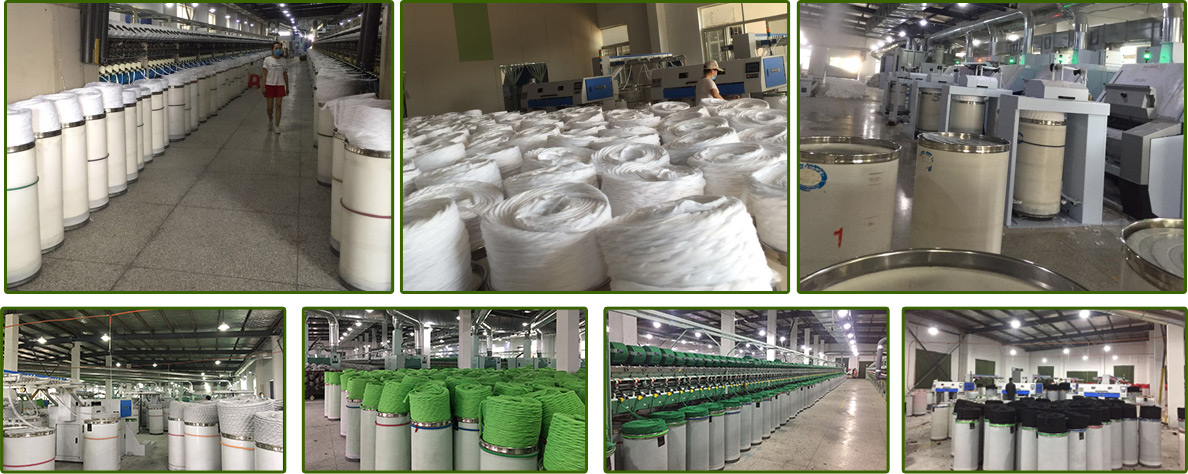 Owning new purchased advanced OE Taitan and Saura machines, professional technicians and strict QC department, we can produce yarn from NE0.5S to NE32S in colored and white, and the composition of yarn is cotton and polyester blended or 100% polyester yarn .Our factory can export about two thousand and one hundred tons yarn per month, and we focus on quality and competitive price, which helps to build good business relationship with many customers.
