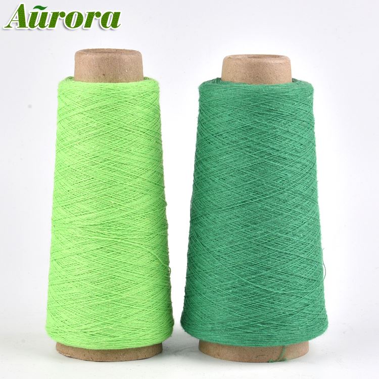 China manufacture green recycled open end yarn NE24S cone dyed polyester yarn